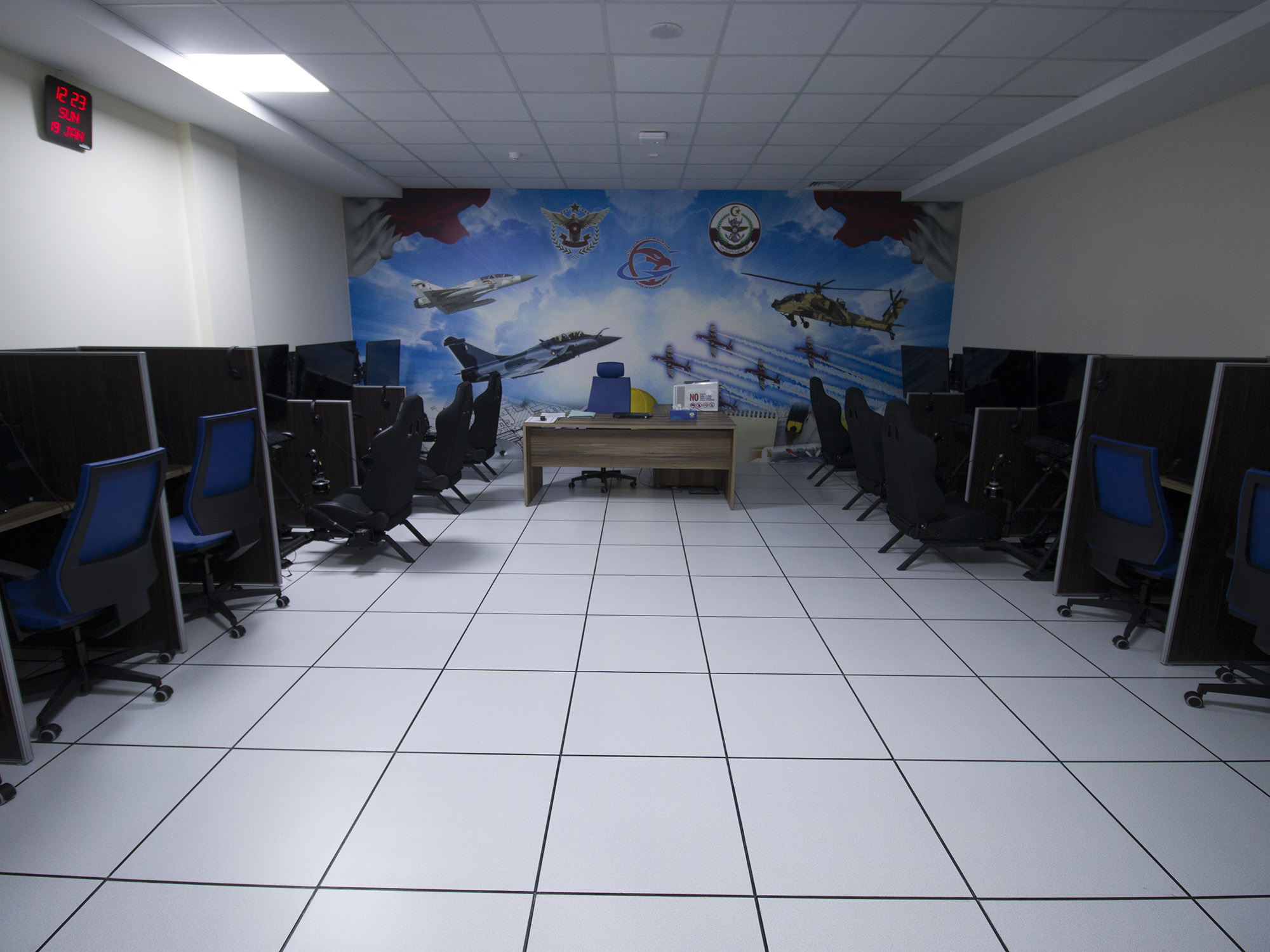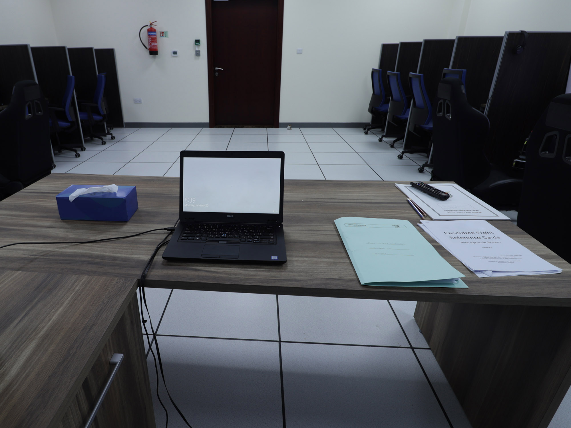 Stațiile din sala de curs includ stația pentru cursant, stația instructorului pentru monitorizarea și administrarea simultană a tuturor testelor candidaților, precum și un centru de date securizat cu rapoarte de scor ale piloților criptate.